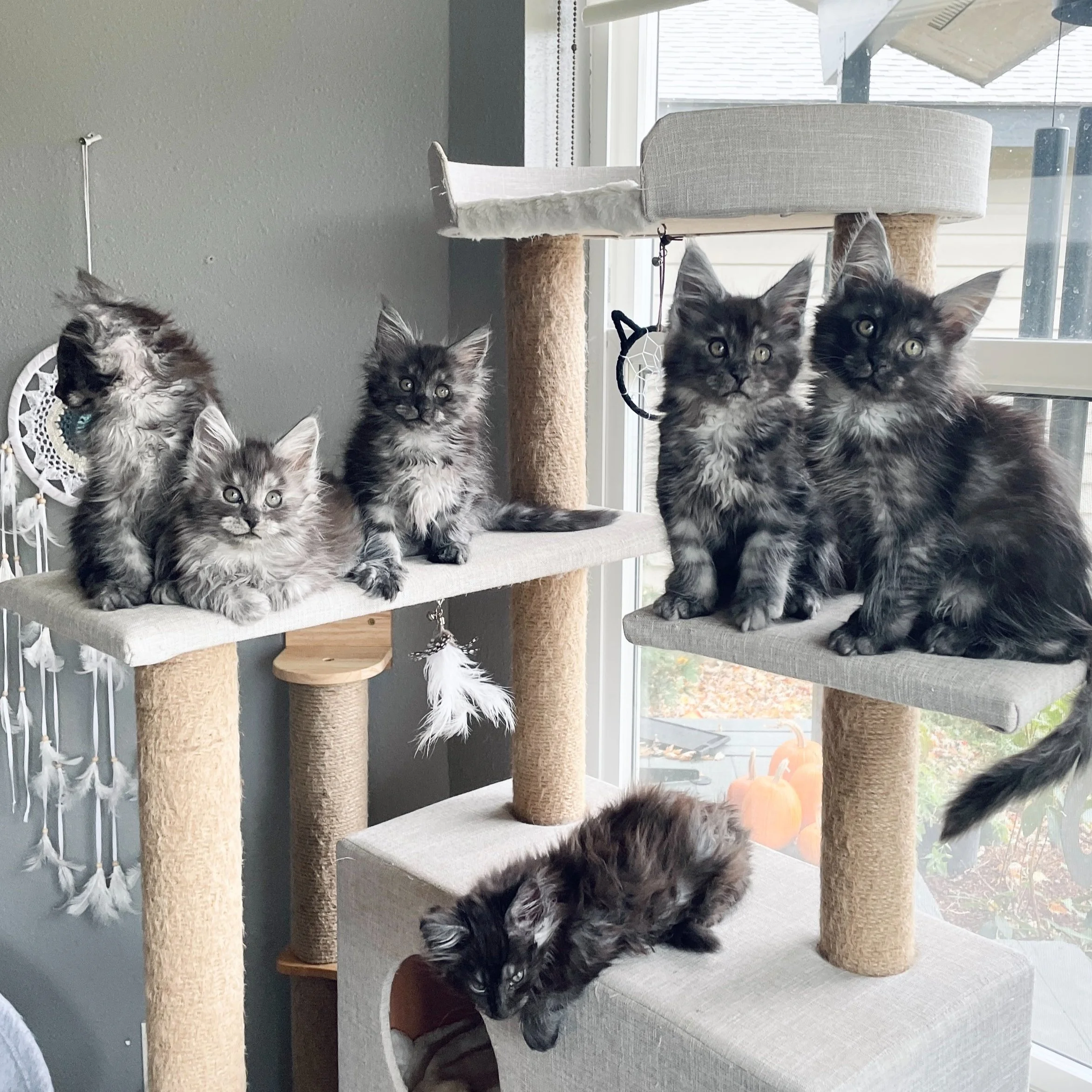 Our Maine Coons come from superb European bloodlines with pedigrees, champion ancestry, and worldwide registries. Our King and Queens are all DNA tested with negative testing results. Each cat carries specific traits to further solidify superior MC kitten quality. Every Koinonia Coon has the most loving, social temperament which we hold to be most important as a breeding trait. As much as we will rave about the quality of our cats, our animal husbandry and care is always a top priority. Our cats are such a gift to our lives!